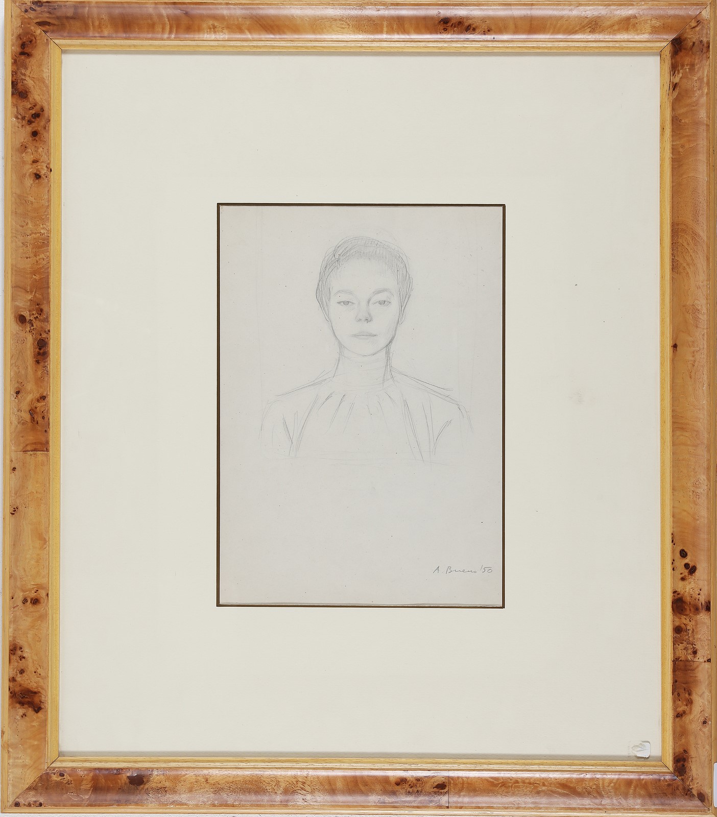BUENO ANTONIO (1918 - 1985) Evelina. 1950. Matita su carta. Cm 25,00 x 34,00. Firma e anno in basso a destra. Autentica su fotografia a cura dell'archivio fotografico generale delle opere Antonio Bueno. . Cornice presente
