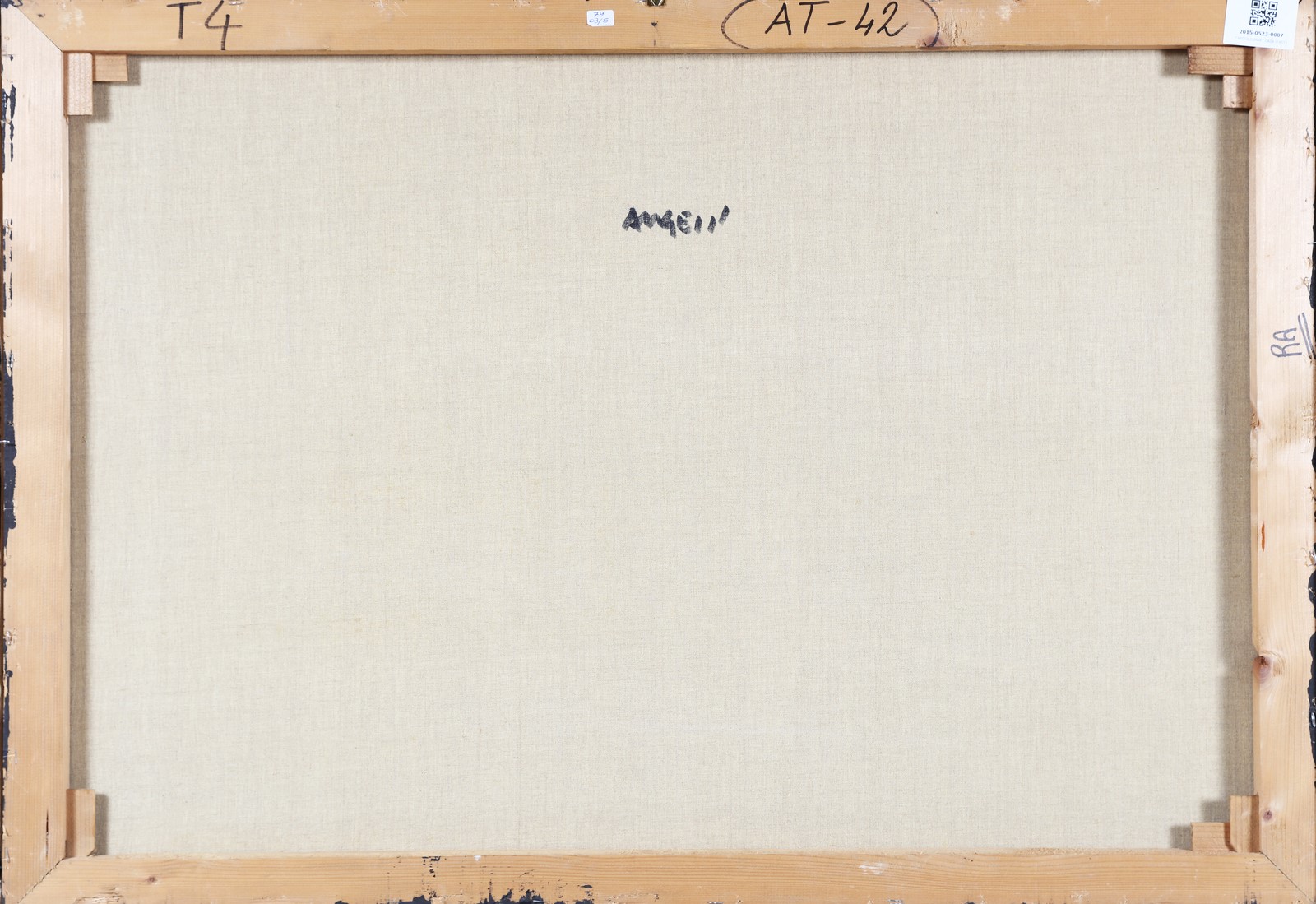 ANGELI FRANCO (1935 - 1988) TURBOLENZE. . 1988. Olio su tela. Cm 100,00 x 70,00. Firma al retro. Autentica su fotografia a cura dell'Archivio per la Monografia Franco Angeli 10 Mercanti un Artista, Milano riportante il relativo numero d'inventario. Opera Archiviata presso l'Archivio Franco Angeli, Roma, come da documentazione fotografica allegata riportante il relativo numero d'inventario. Cornice presente