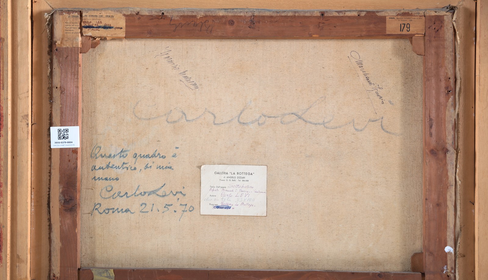 LEVI CARLO (1902 - 1975) Sottobosco. Olio su tela. Cm 72,00 x 101,00. Al retro firma per autentica. Cartiglio descrittivo a cura della Galleria La Bottega e cartiglio espositivo della XXVII Biennale di Venezia. Cornice presente