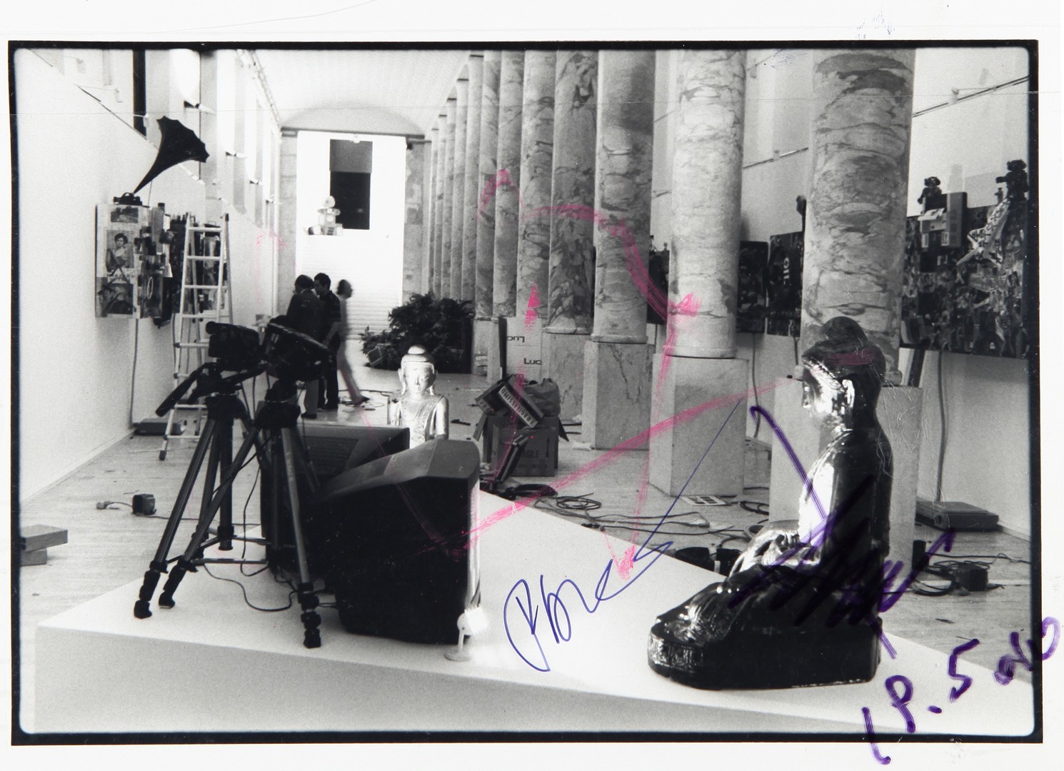 GARGHETTI FABRIZIO (-) Allestimento mostra di J. Paik stampa alla gelatina sali d'argento - vintage con interventi a pennarello di Paik 18x24 cm sul retro timbro del fotografo