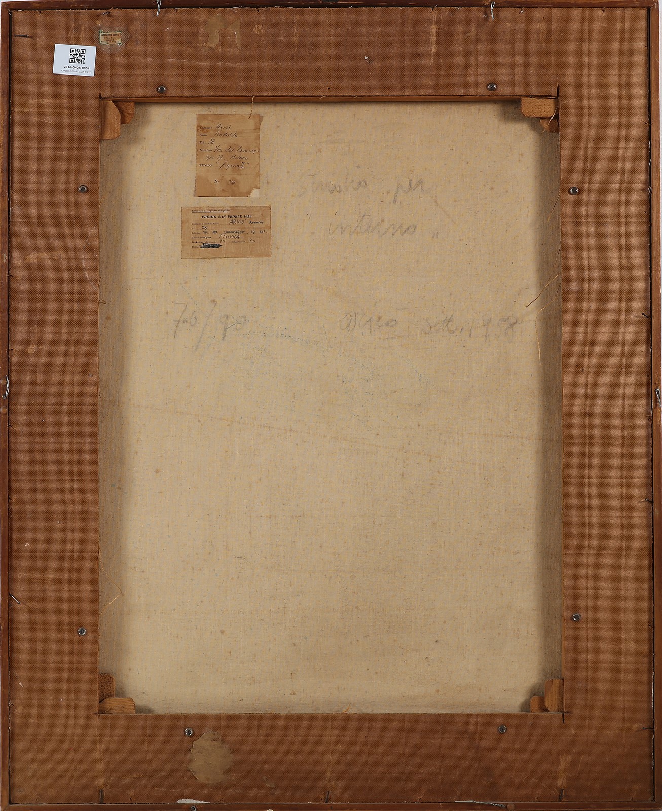 ARICO' RODOLFO (1930 - 2002) Studio per interno. 1958. Olio su tela. Cm 70,00 x 90,00. Firma e anno in basso a destra. Al retro firma, titolo e anno. Cartiglio descrittivo a cura dell'artista. Cornice presente