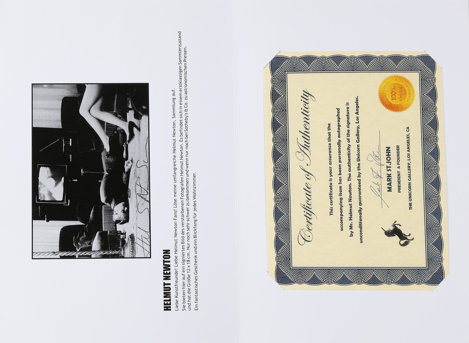 NEWTON HELMUT (1920 - 2004) Senza titolo. . Fotografia b/n. Cm 13,00 x 18,00. Firma in basso a sinistra. Autentica a cura di Mark St. John, The Unicorn Gallery, Los Angeles.