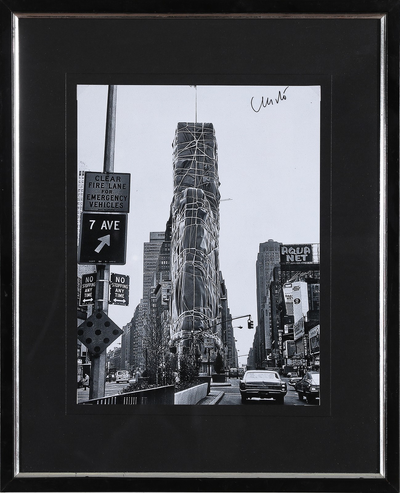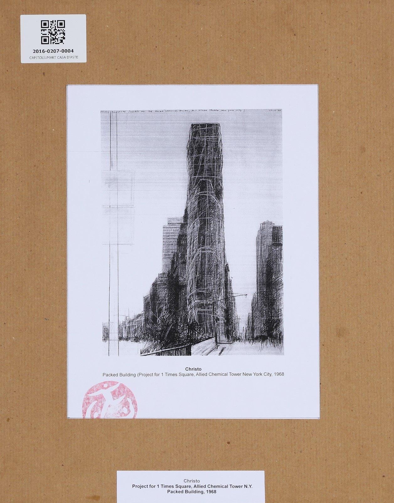 CHRISTO (n. 1935) Packed Building. . 1968. Fotografia. Cm 20,00 x 30,00. Firma in alto a destra. Al retro fotografia del progetto.