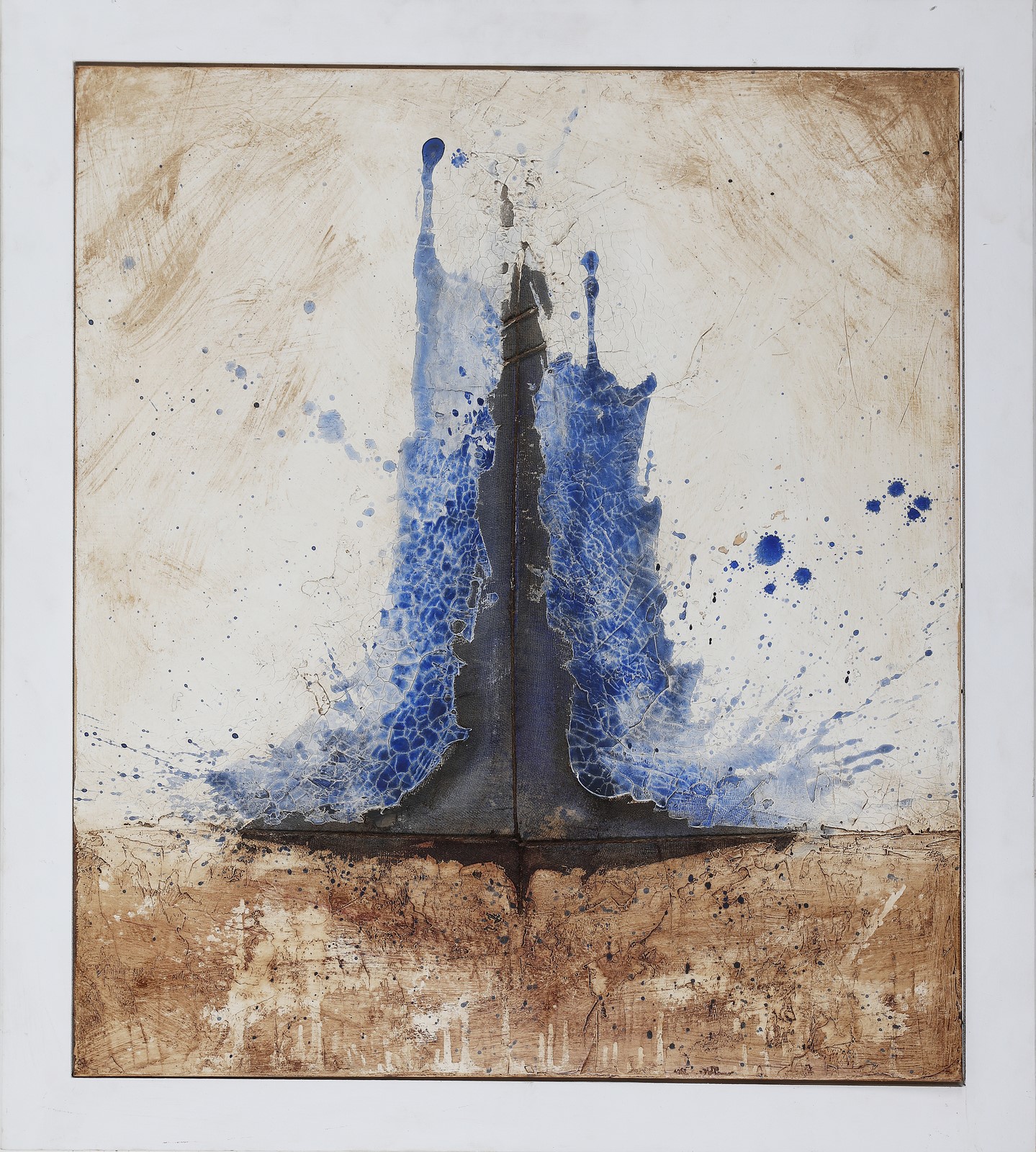 FETTOLINI ARMANDO (n. 1960) Il ritorno della pioggia. 1999. Tecnica mista su tavola. Cm 61,00 x 70,00. Al retro firma, titolo e anno. Autentica dell'artista su fotografia riportante il relativo numero d'inventario.