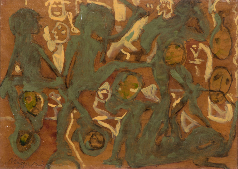 MINO MACCARI (Siena 1898 - Roma 1989) Figurine, 1955 Olio su cartone, cm. 25...