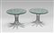 in metallo e vetro, con piano circolare e base ad elementi curvati