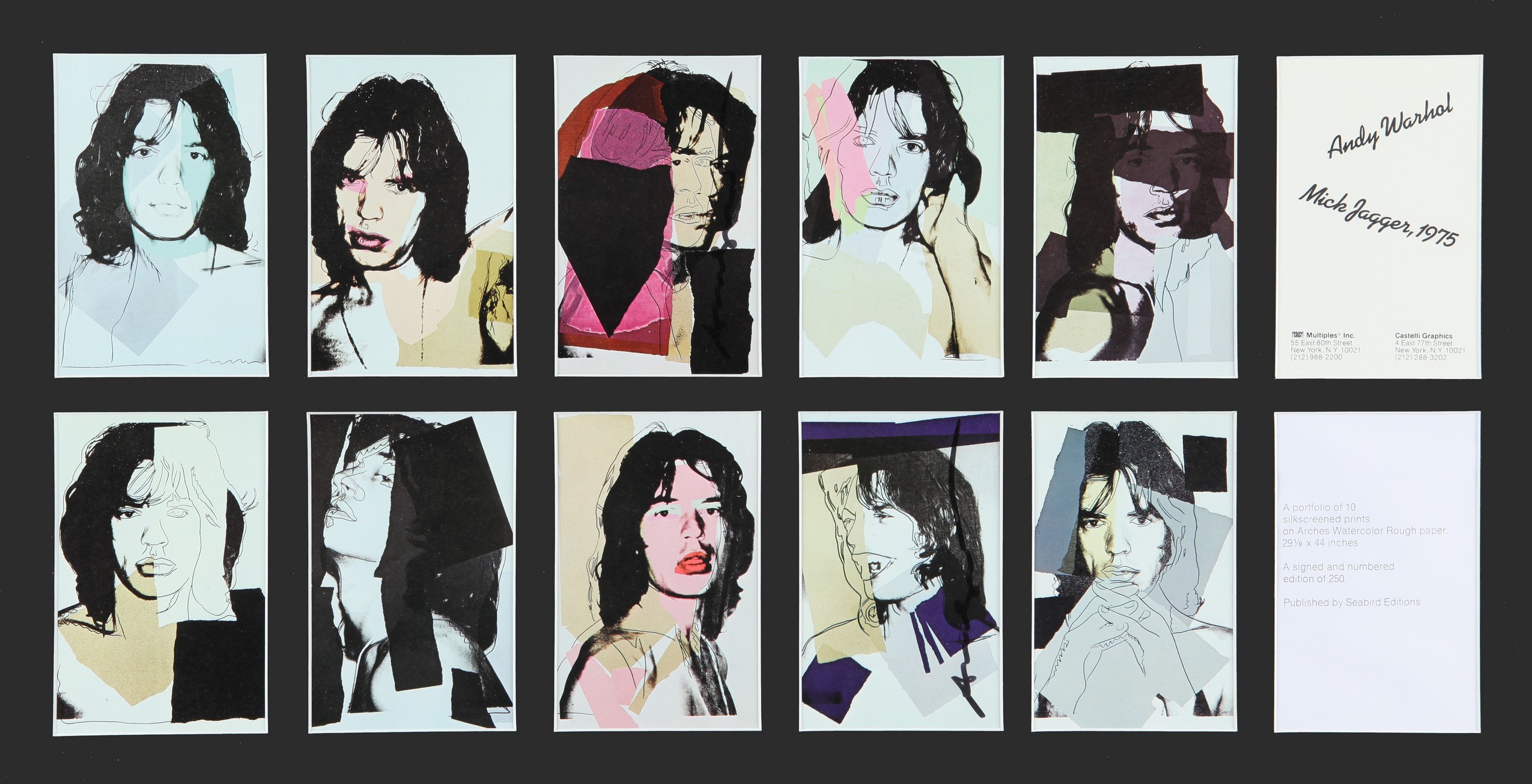 ANDY WARHOL (1928-1987) Mick Jagger ticket 1975 portfolio di 10 cartoline serigrafate cm 15x9,8 eseguite in 250 esemplari due firmate da andy warhol