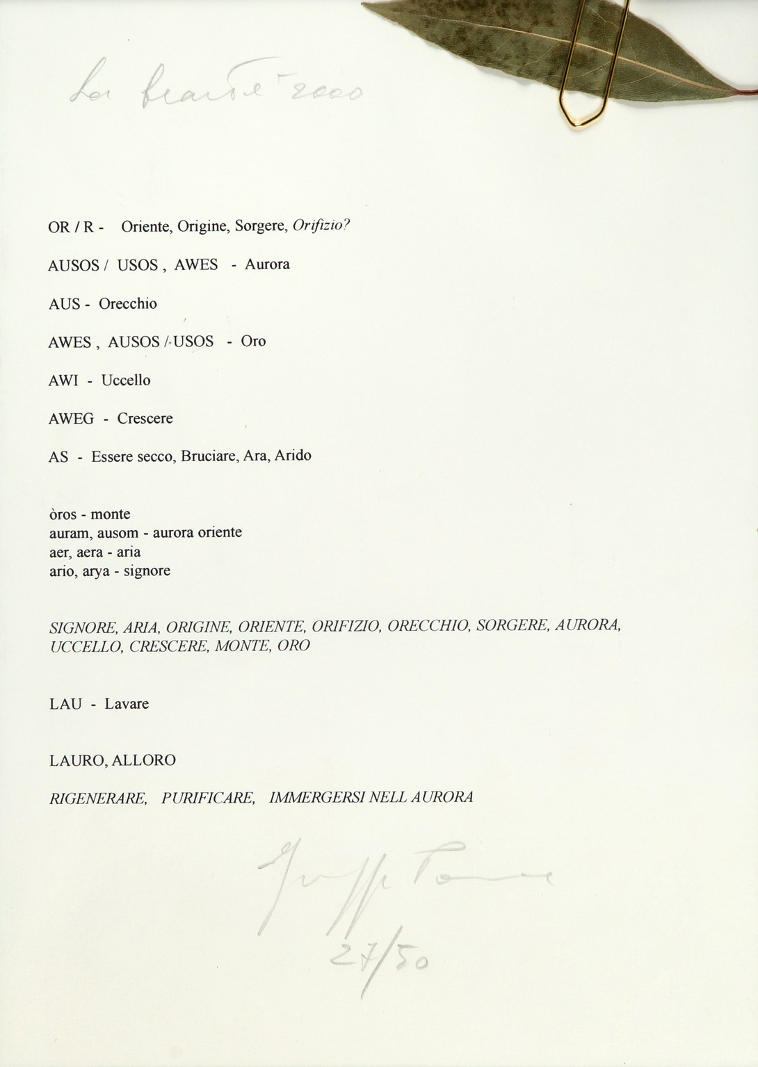 Lotto 1018 | GIUSEPPE PENONE (1947-) La beautè 2000 foglia d'alloro, clips placcato oro e...