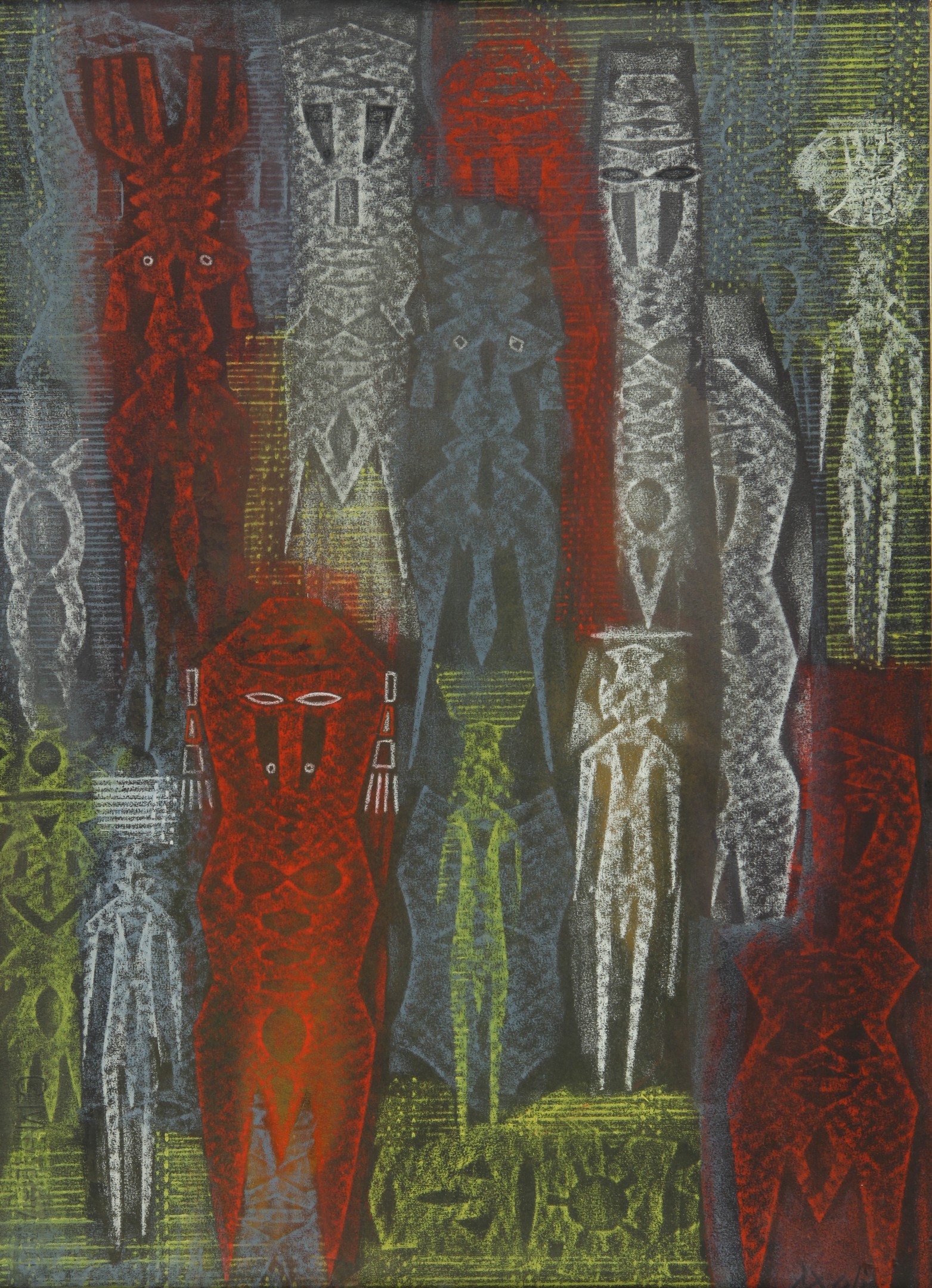 CORRADO CAGLI (1910-1976) Totem 1954 olio su tavola cm 66x47,5 firmato sul retro etichetta Galleria Schettini Milano etichetta Galleria Mercurio Milano
