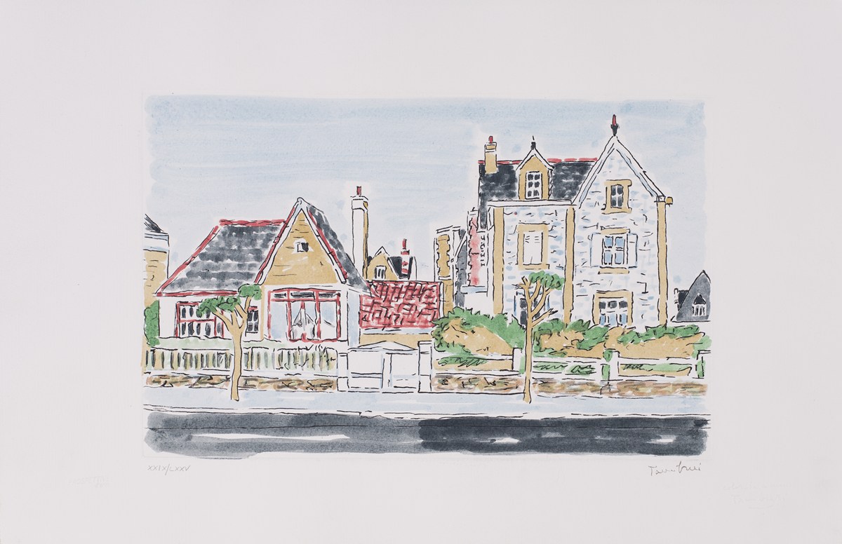 Lotto 558 | ORFEO TAMBURI (1910-1994)Periferia parigina Acquaforte colorata a manoLastra...