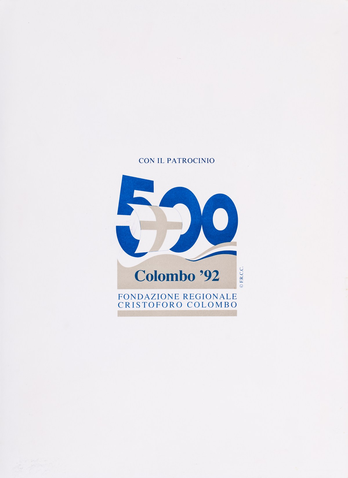 Opera entro folder originale realizzata dalla prospettiva d'Arte (MI) con il patrocinio della Fondazione Regionale Cristoforo Colombo, 1992