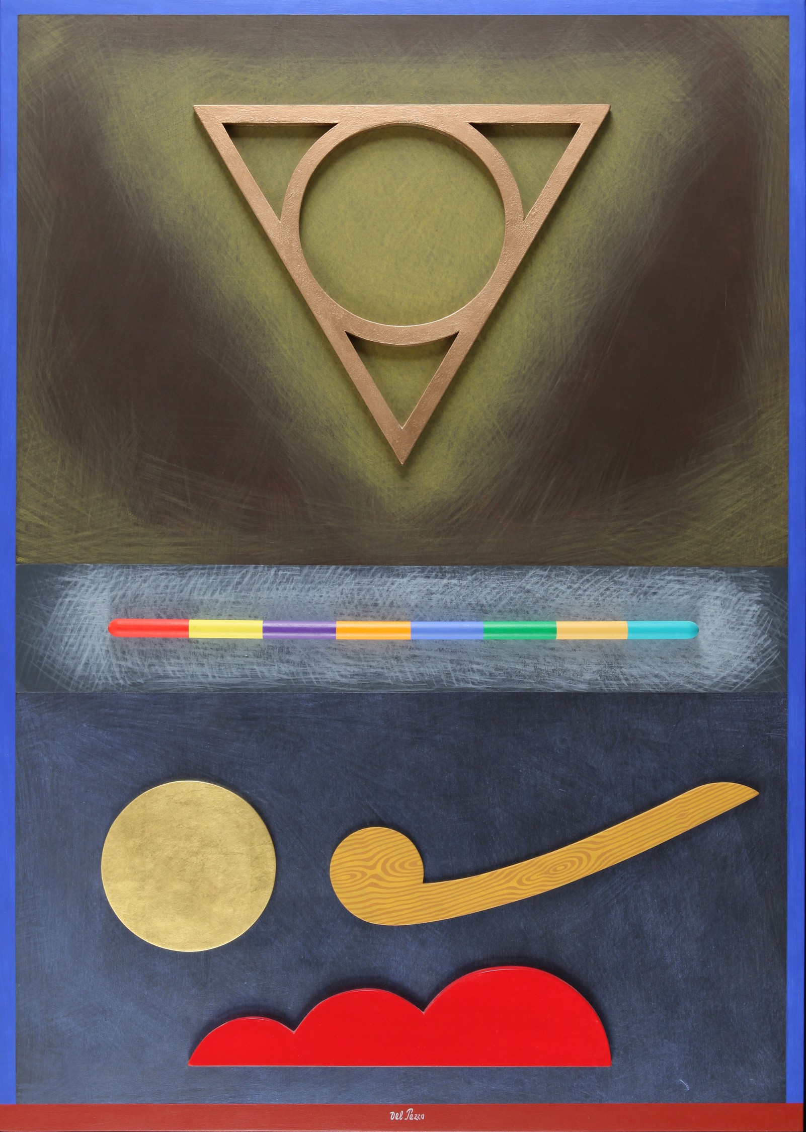 LUCIO DEL PEZZO (1933-) multicolores tecnica mista su tavola cm 100x70 firmato in basso al centro autenticato dall'artista su foto