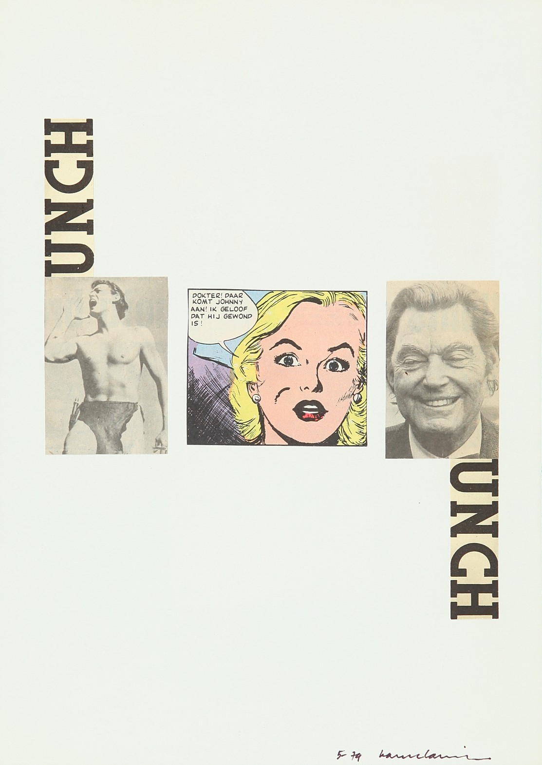 CLAVIN HANS (1946-) Johnny 1976 collage cm 29,7x21 firmato e datato in basso a destra autentica dell'artista provenienza atelier dell'artista bibliografia Hans Clavin "Il poeta volante" 2008 Fondazione Berardelli pag.63