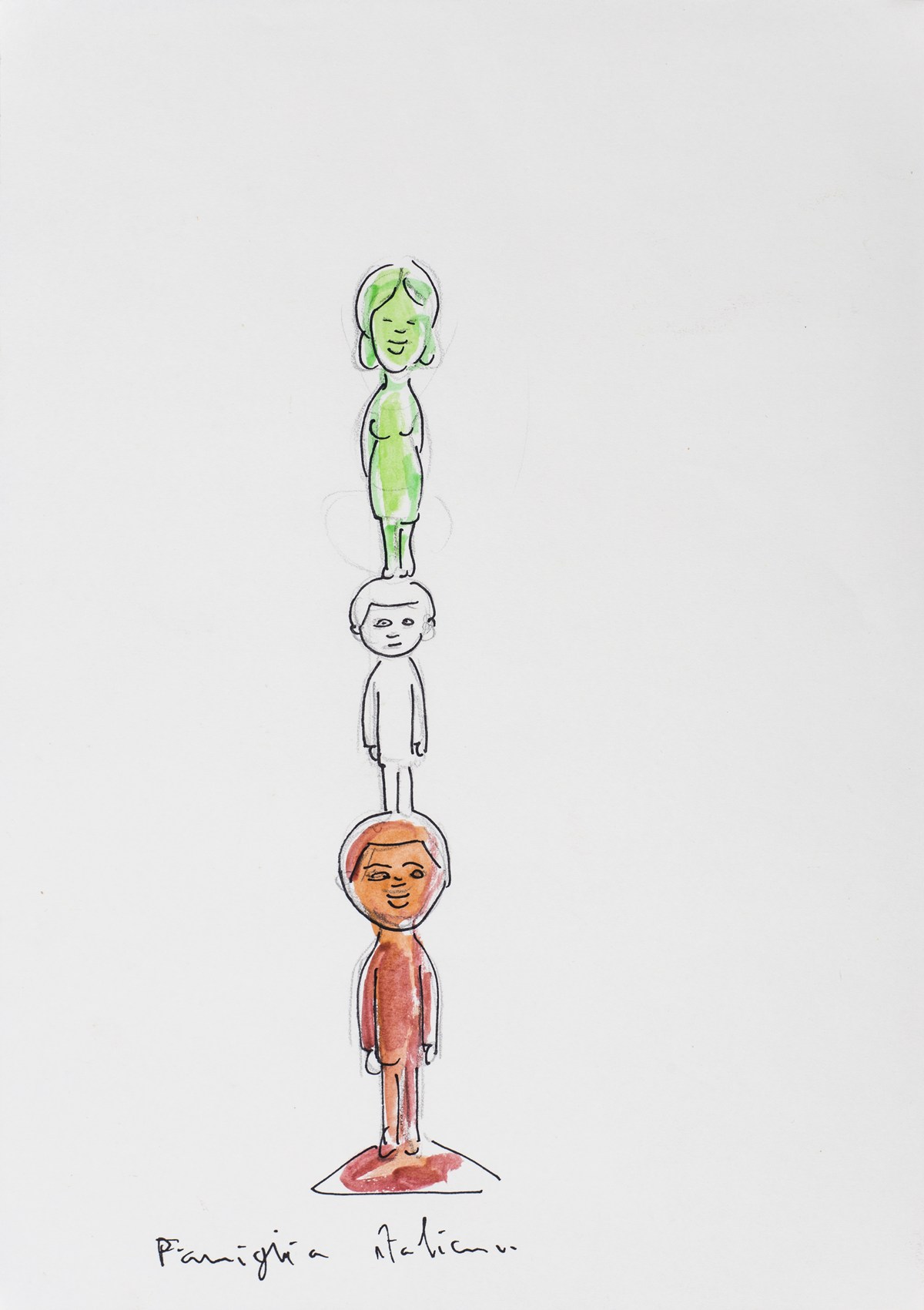 GIANNI CELLA (1953)Famiglia Italiana Tecnica mista su cartaCm 29,5x21Titolo...