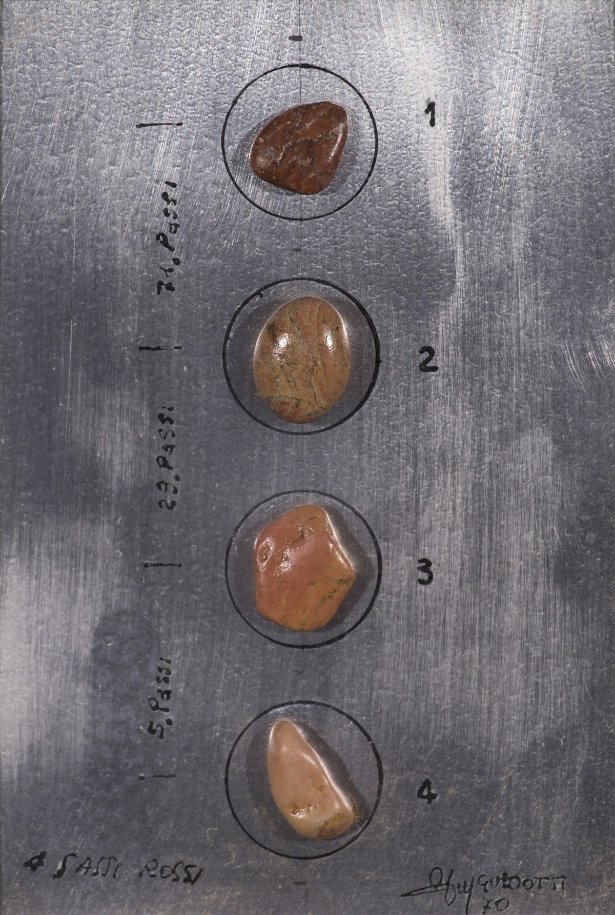 GUIDO GUIDOTTI4 sassi rossi, 1970 Applicazione di pietre e acrilici su...