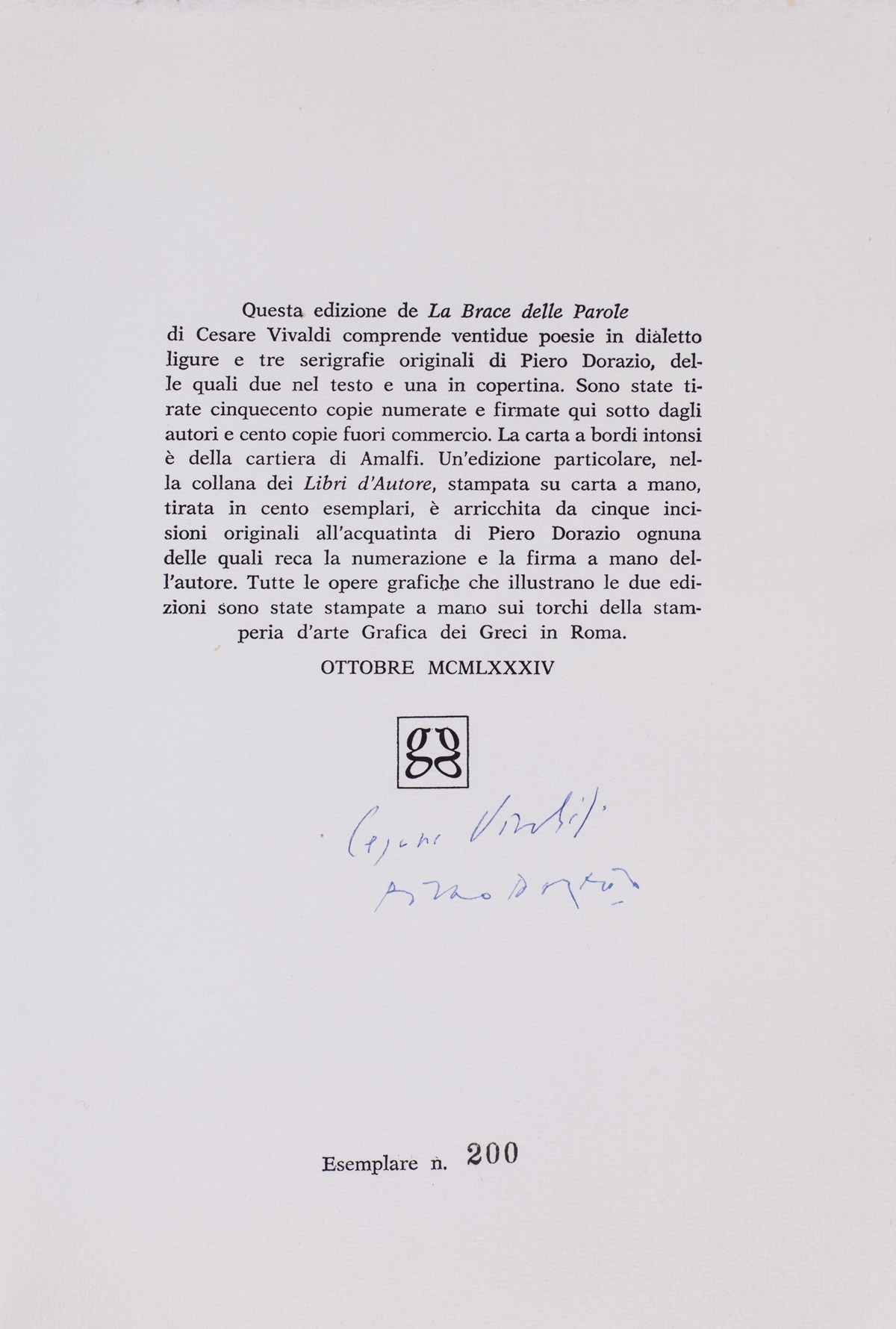 Sul colophon le firme di Piero Dorazio e Cesare Vivaldi