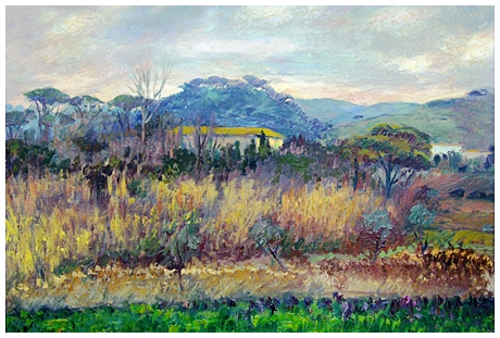 GIO BATTA LEPORI Livorno 1911 – Livorno 2002 Grigio a Monte Rotondo Olio su tavola 42,5 x 64. Firma, titolo, località e misure sul verso + etichetta studio dell’artista. B.A.: 150