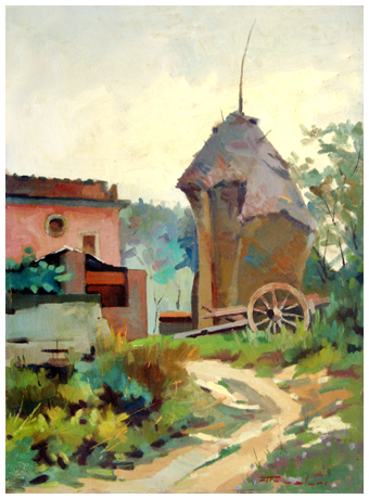 OTTORINO VALORI Livorno 1909 – Livorno 1999 Vecchia casa colonica a Parrana Olio su tavola 40 x 30. Firma in b. a d.; sul verso titolo, località e firma + timbro studio dell’artista. B.A.: 60