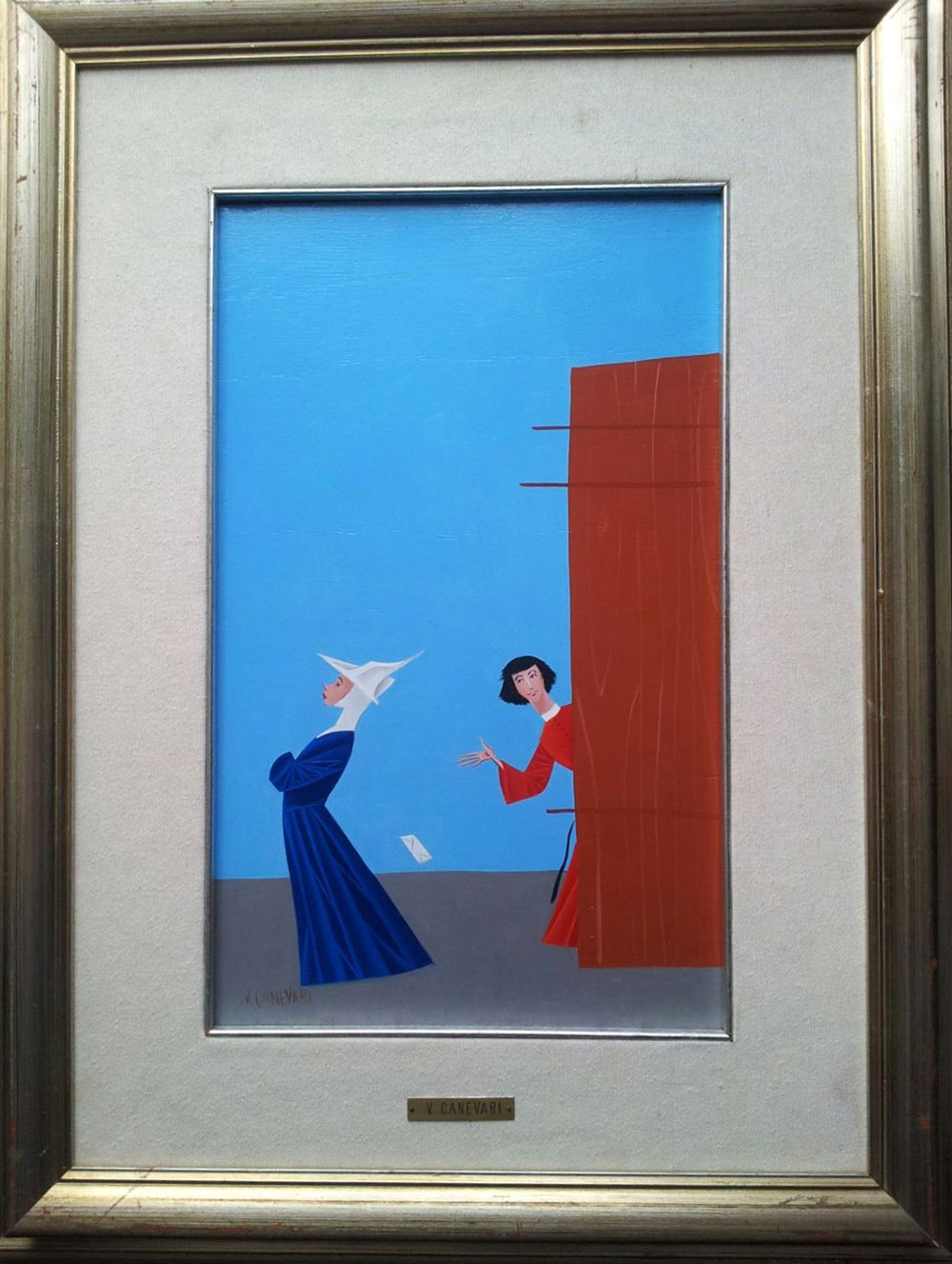 Veniero Canevari "Il messaggio" olio su tavola 40x25