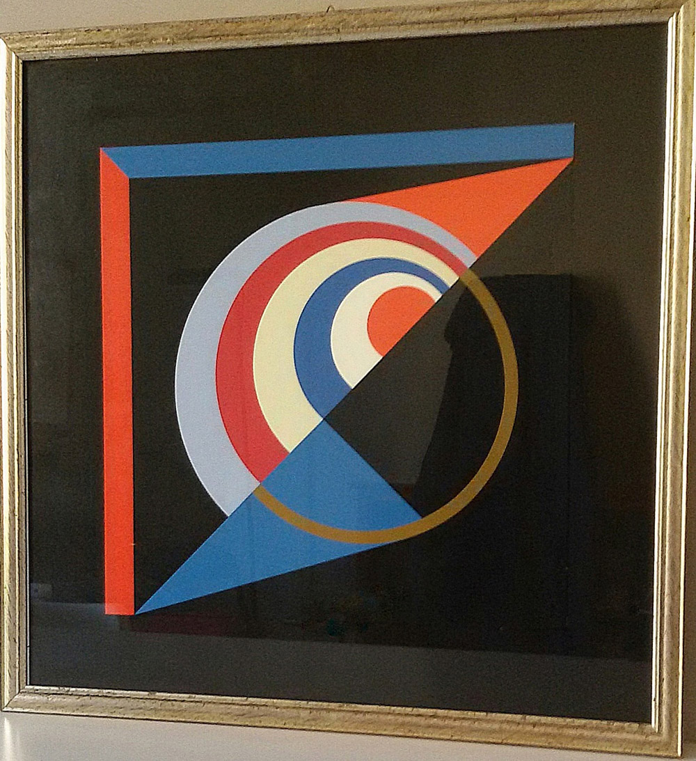 Nicolay Diulgheroff "Cerchi in equilibrio ondulato giallo-rosso" 1972 - Tav. n. 2 - Serigrafia- Es. 74/150 - cm 42x42 - Cart. Ed. Carlo Belloli - Firma autografa dell'artista al retro - Prov. Galleria Viotti TO