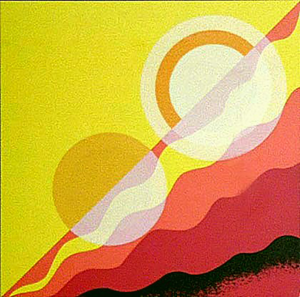 Nicolay Diulgheroff "Cerchi in equilibrio ondulato giallo-rosso" 1972 - Tav. n. 2 - Serigrafia- Es. 74/150 - cm 42x42 - Cart. Ed. Carlo Belloli - Firma autografa dell'artista al retro - Prov. Galleria Viotti TO