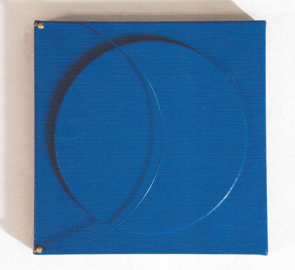 Bruno Bani "Composizione celeste" T.m e applicazioni su tela cm 30x30.Autentica dell'artista su foto