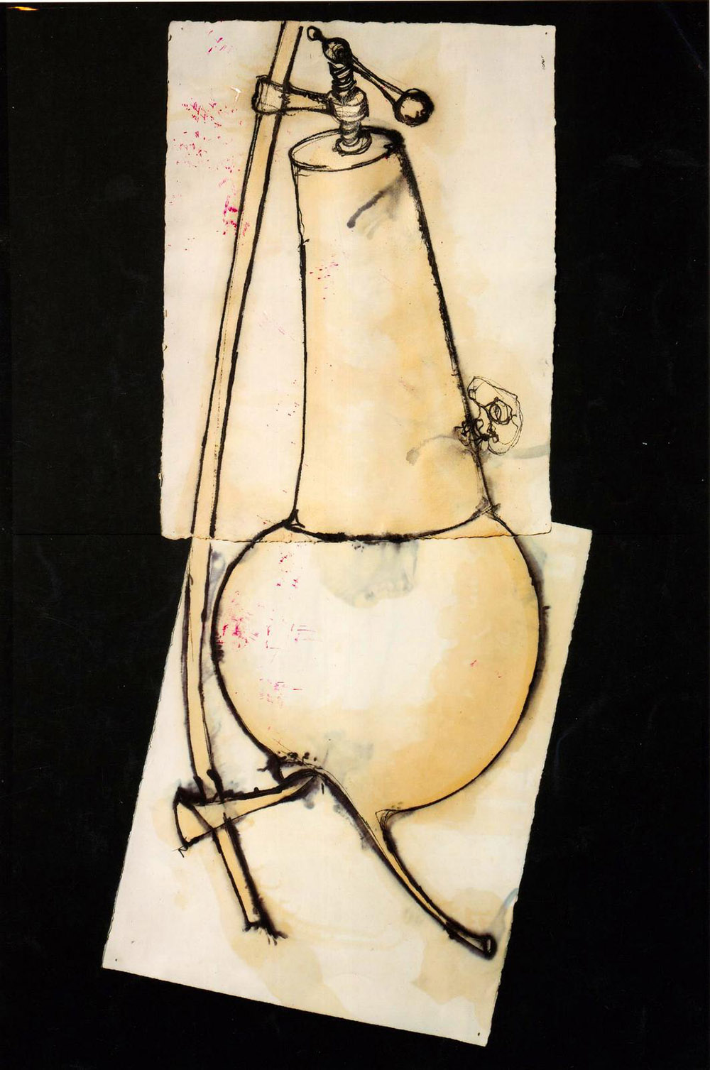 Gilberto Zorio "Cagna e crogiuolo + alambicco" 1981 - Inchiostri e vernici su...