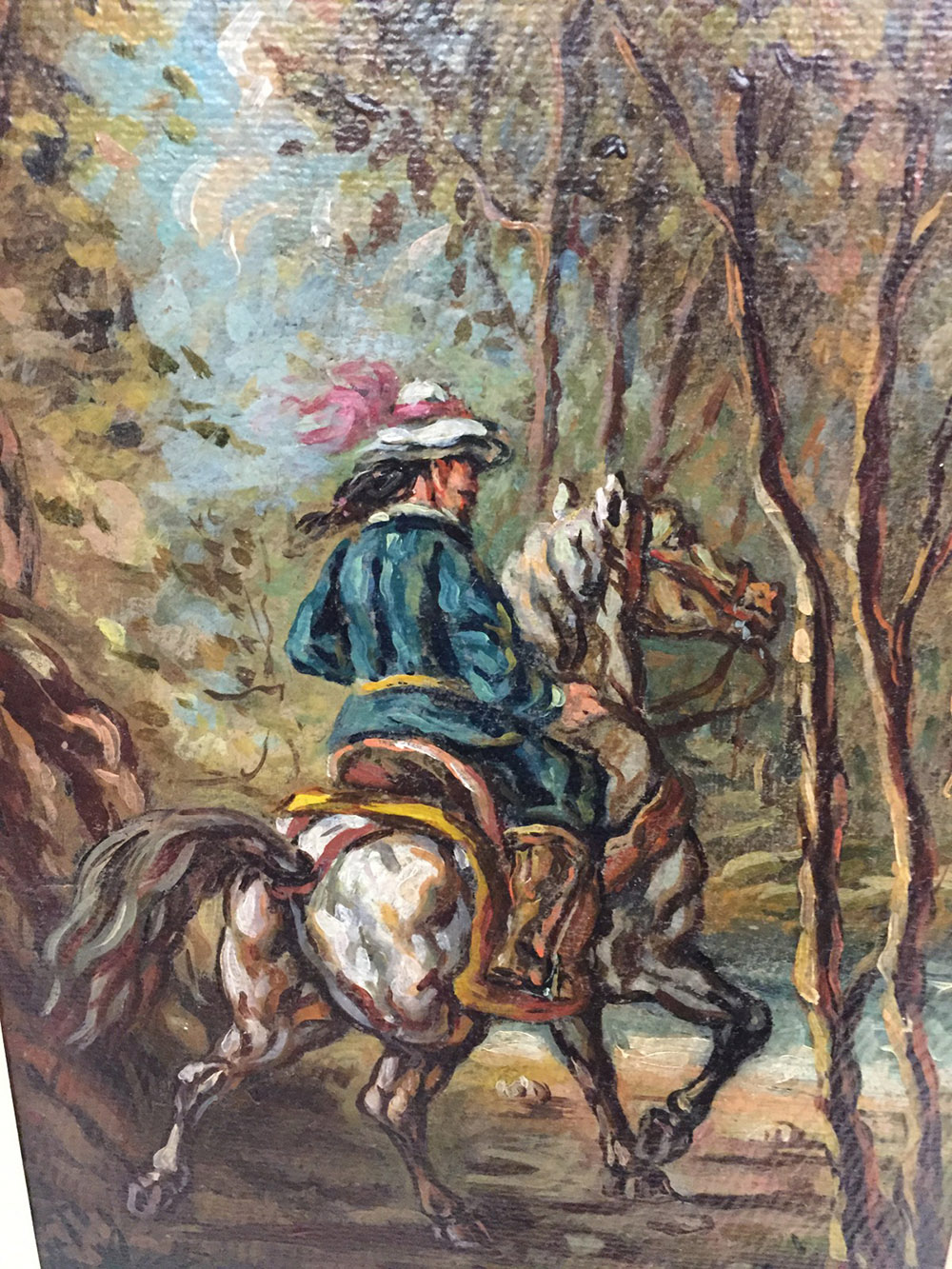 Giorgio De Chirico"Cavallo e cavaliere" anni 50-Olio su cartone xm 25,5x37,5 autentica e dichiarazione giurata in data 13 maggio 1982 di Claudio Bruni Sakraischik Consulente in cassazione del tribunale di Roma, Opera in fase di Archiviazione presso L'Archivio Dechirico,