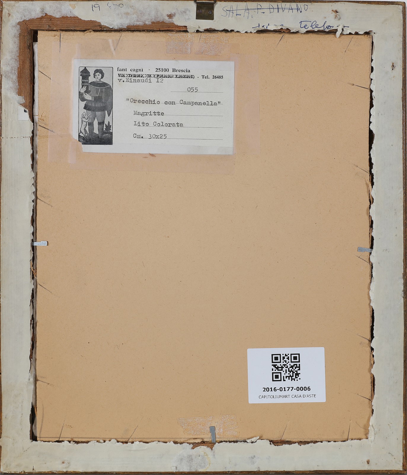 MAGRITTE RENE' (1898 - 1967) La Leçon de Musique. . 1968. Etching on japan paper. Cm 22,70 x 28,00. E.A. 153x102 mm full margins. With the artist's ink stamp signature and blind stamp, lower right, and numbered in pencil, lower left. Printed and published by Georges Visat, Paris. From Le Lien de Paille. Kaplan/Baum 15. Provenance: Fant Cagnì Gallery, Brescia (label at the back); Private collection, Brescia.