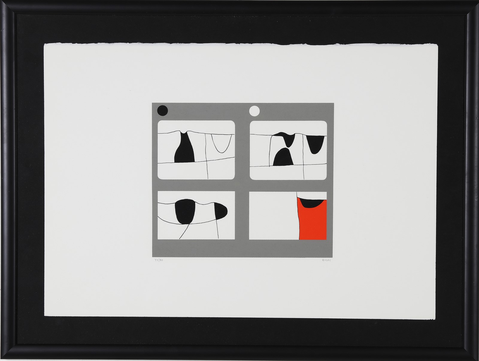 BURRI ALBERTO (1915 - 1995) Letter. Silkscreen printing. Cm 50,00 x 35,00. 77/90 + XXV. Edition and signature lower in pencil. Pubblications: Opere Grafiche Alberto Burri, Galleria d'Arte San Luca, Bologna, pag 26. Cornice presente