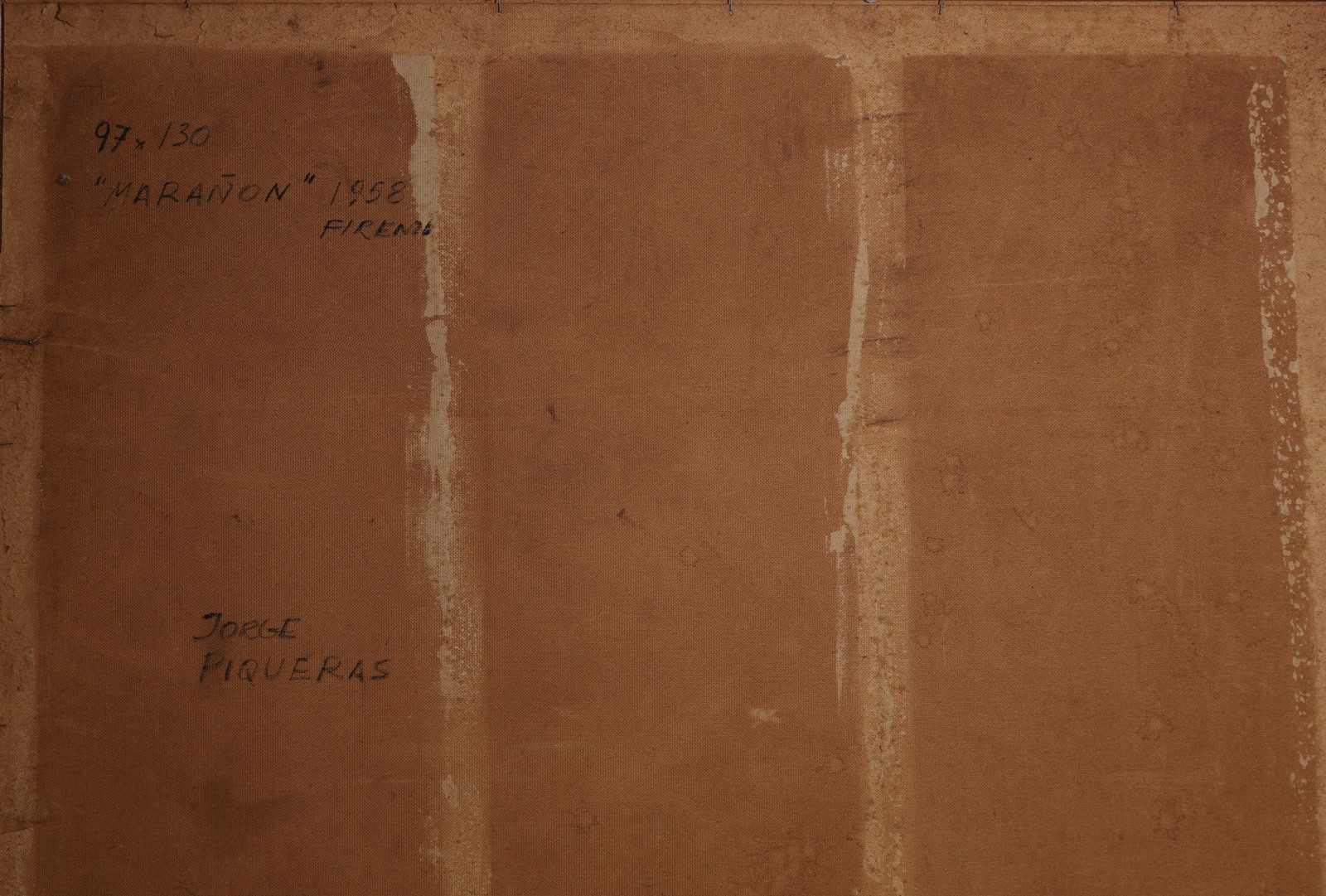PIQUERAS JORGE (n. 1925) Maranon. 1958. Oil on hardboard. Cm 130,00 x 97,00. Title, signature and year at the back.
