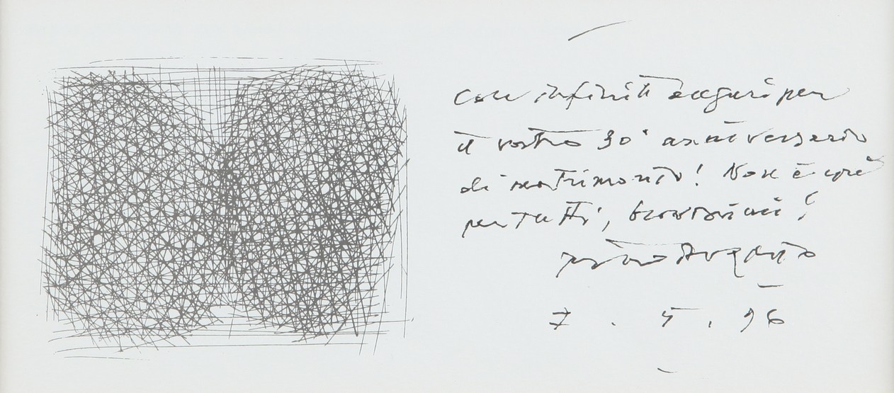 PIERO DORAZIO (1927-2005) Senza titolo 1996 inchiostro su carta cm 9x19,5 firmato, dedicato ad personam e datato a destra