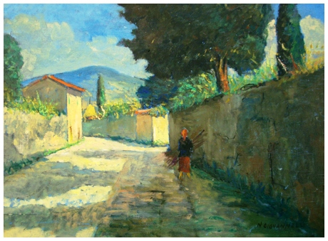 NELLO GIOVANNELLI Livorno 1922 – Livorno 1996 Senza titolo Olio su tavola 38,2 x 50,2. Firma in b. a d.; sul verso firma e località. B.A.: 90