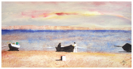 SALVATORE MAGAZZINI Pistoia 1955 Pescatori sul Nilo Olio su tavola 25 x 50. Firma in b. a d.; sul verso titolo, scritta di autentica e firma. Autentica dell’autore su foto. B.A.: 120