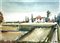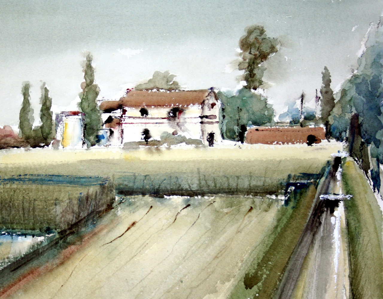 Virginio Bonifazi 1918, Macerata (Mc) - 1997, Macerata (Mc) - [Italia] Casolare in pianura acquerello su carta 50x64 cm c. 1965 firma dell’artista in basso a destra certificato di provenienza garantita Picenum