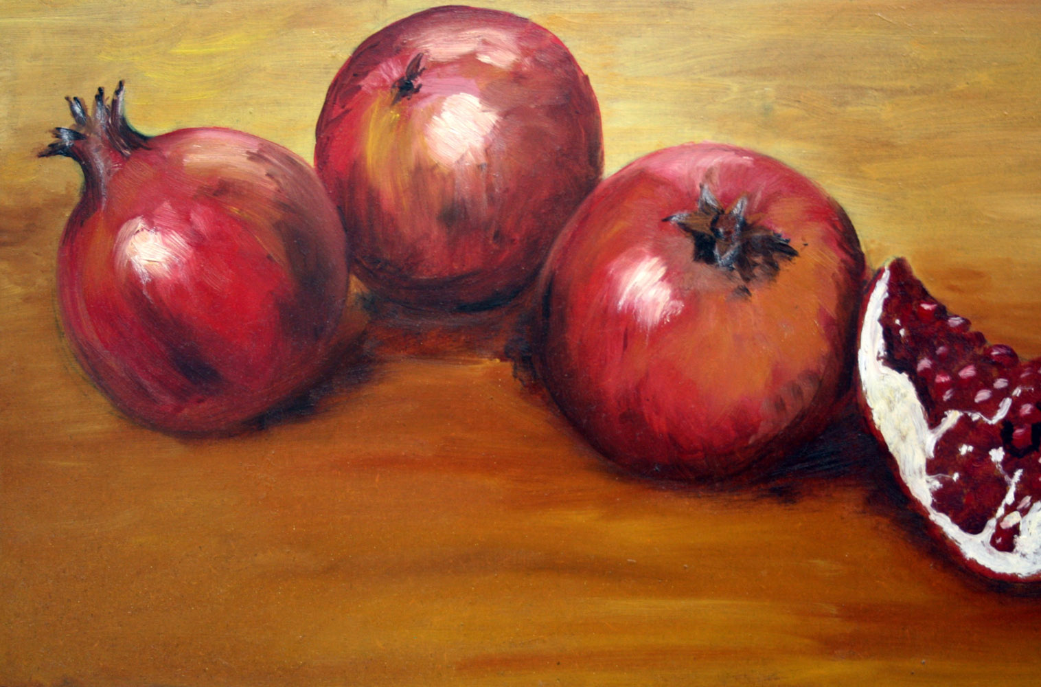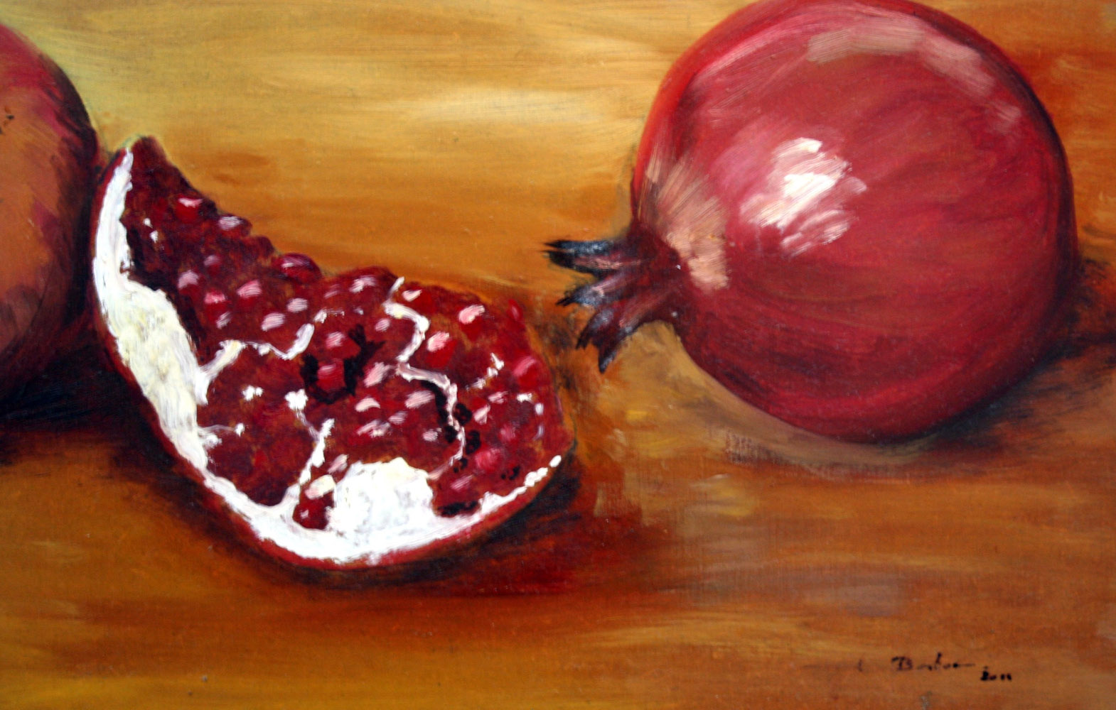 Peter Bostoen 1960, Roeselare - [Belgio] Punica Granatum olio su legno 22,5x54,5 cm 2014 firma dell’artista in basso a destra e sul retro certificato di provenienza garantita Picenum