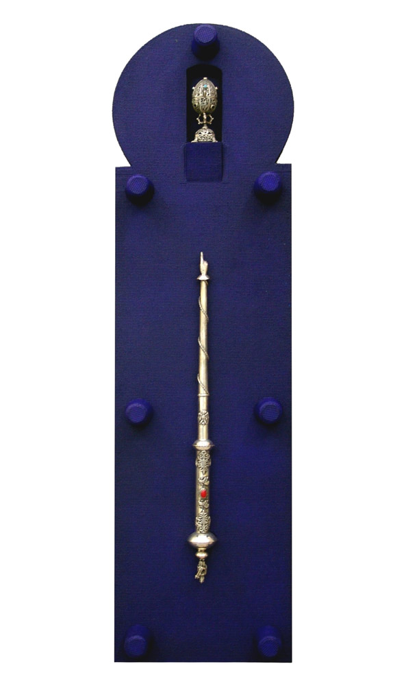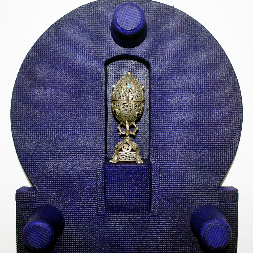 Eugenio Cerrato 1947, Gravellona Toce (Vb) - [Italia] Dalle torri della notte acrilico su legno telato, torah pointer, uovo in argento 93x25x8 cm 2016 firma dell’artista sul retro certificato di provenienza garantita Picenum