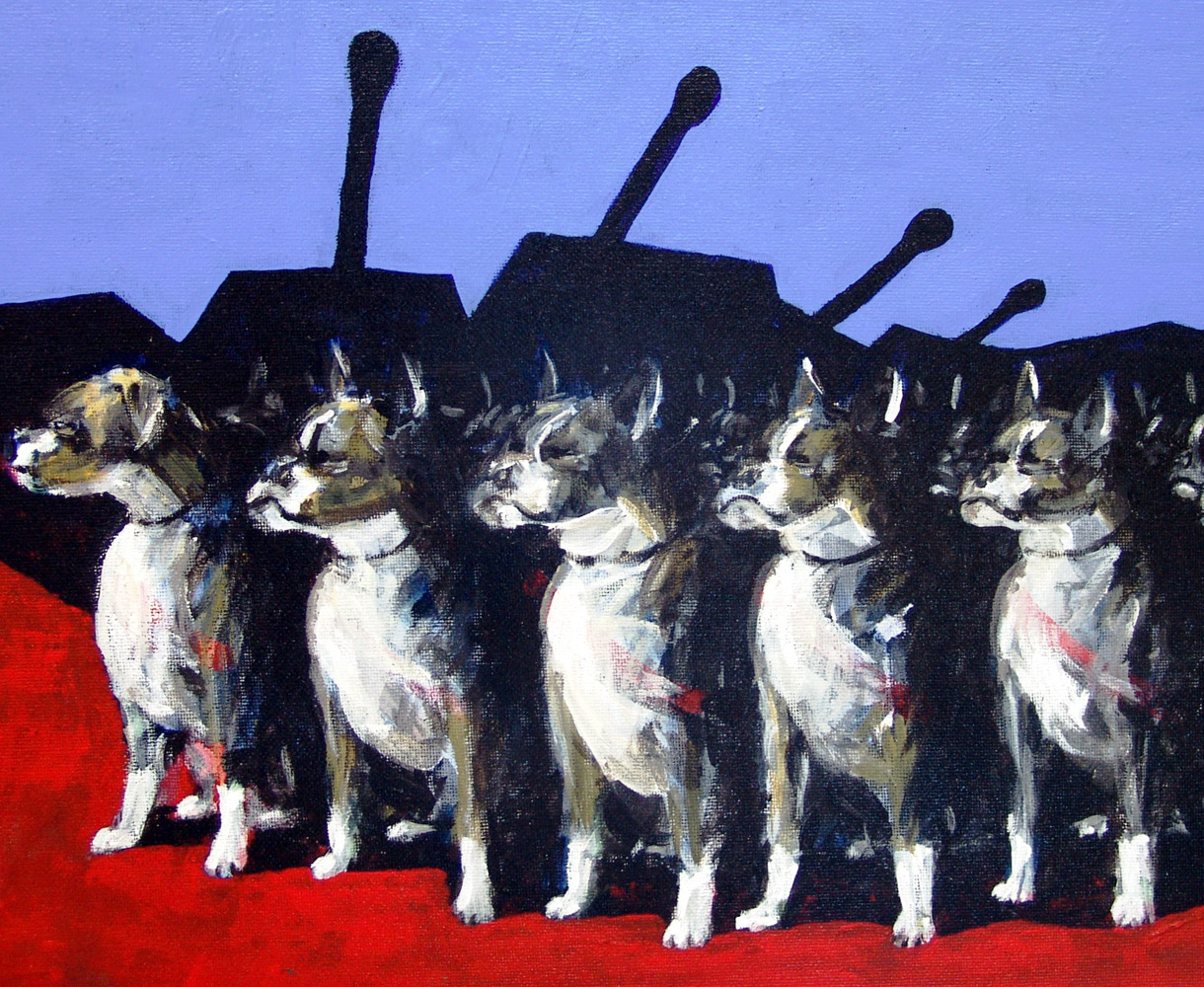 Rosihan Dahim 1955, Singapore - [Repubblica di Singapore] Dogs of war acrilico su tela 45x60 cm 2006 firma dell’artista in basso a destra e sul retro certificato di provenienza garantita Picenum