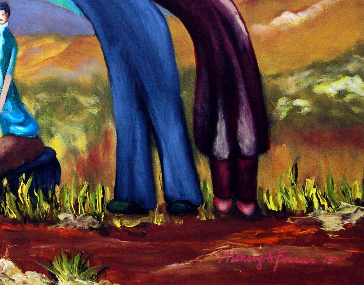 Neneng Sia Ferrier 1953, Jakarta - [Indonesia] Happy family olio su tela stampata 80x120 cm 2015 firma dell’artista in basso a destra e sul retro; opera con cornice certificato di provenienza garantita Picenum