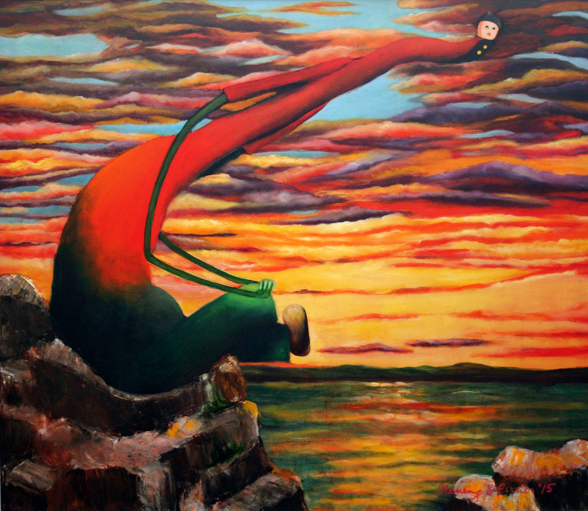 Neneng Sia Ferrier 1953, Jakarta - [Indonesia] Sunset olio su tela stampata 87x100 cm 2015 firma dell’artista in basso a destra e sul retro; opera con cornice certificato di provenienza garantita Picenum