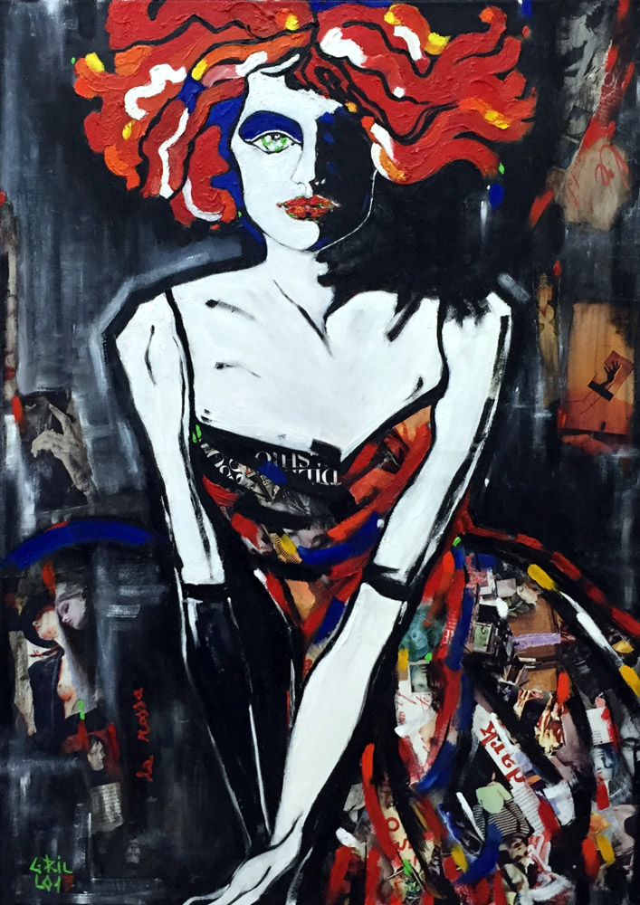 Paola Grillo 1956, San Giorgio a Cremano (Na) - [Italia] La rossa mista su tela 100x70 cm 2013 firma dell’artista in basso a sinistra e sul retro certificato di autenticità firmato dall’artista