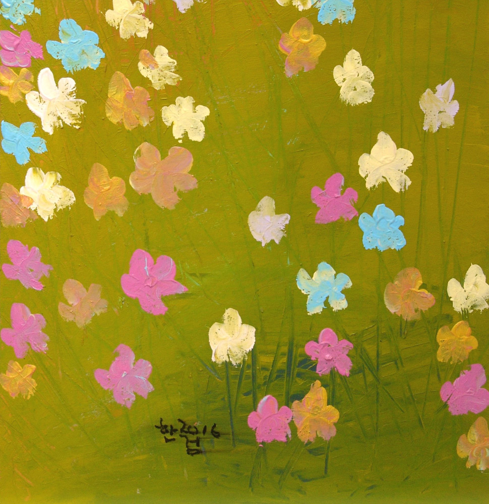 Hangeom 1982, Daegu - [Corea] Flowers no. 2 acrilico su tavola 60,5x40,5 cm...