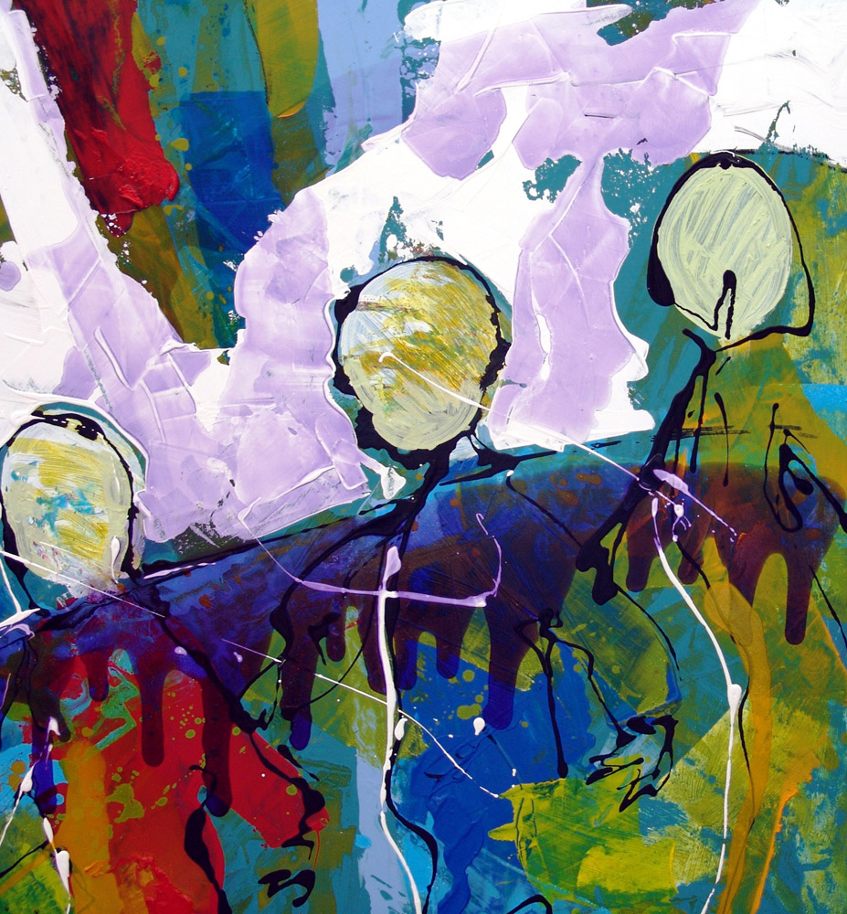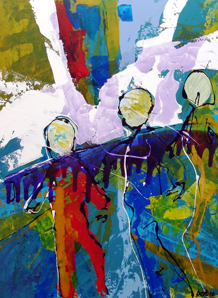 Bert Jacobs 1947, Wageningen - [Paesi Bassi] Three friends acrilico su legno triplex 125x90 cm 2016 firma dell’artista in basso a destra e sul retro; opera con cornice certificato di autenticità dell’artista