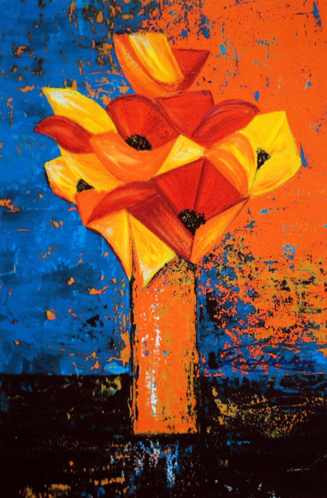 Lena Kelekian 1959, Beirut - [Libano] Bouquet 2 stampa unica su tela 43,5x29...