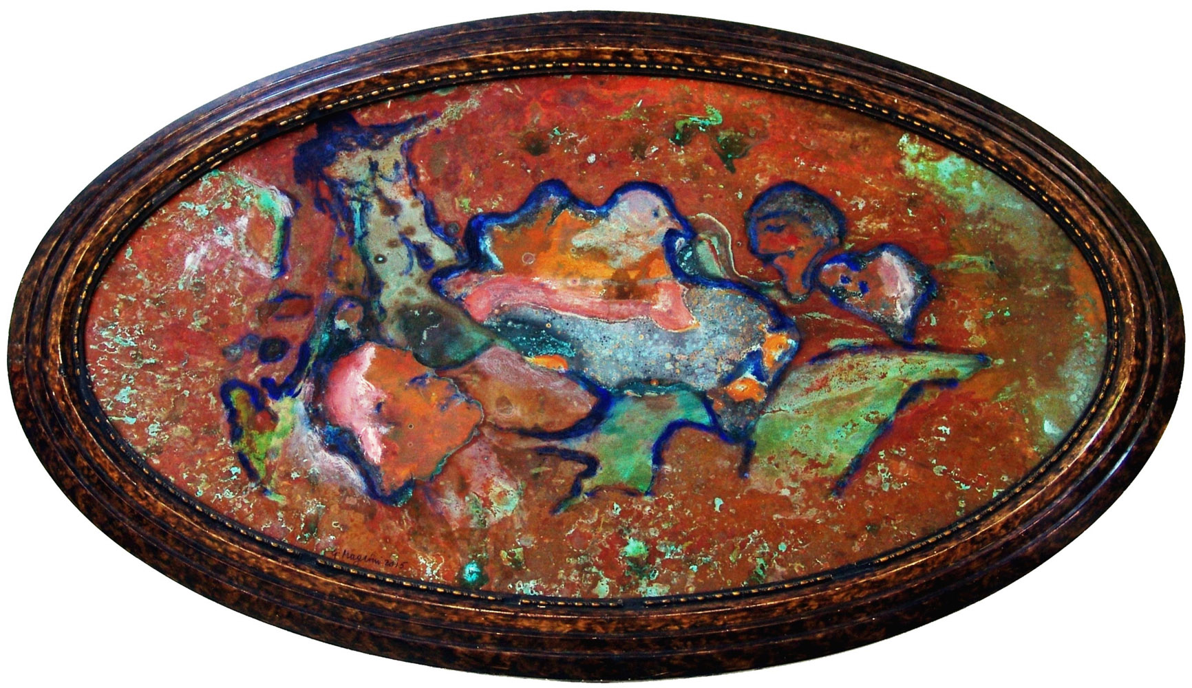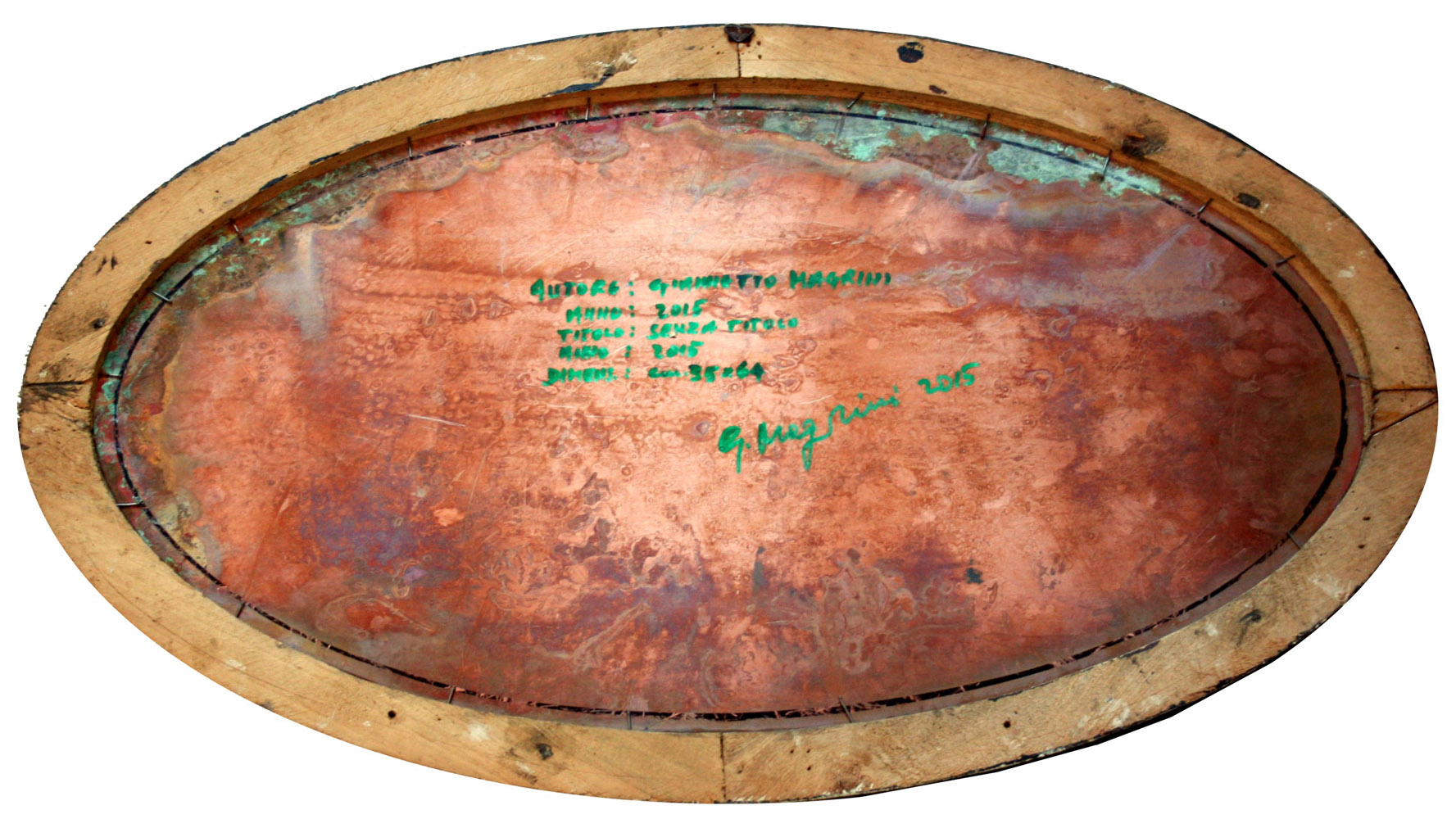 Giannetto Magrini 1938, Jesi (An) - [Italia] senza titolo olio su rame ovale 35x64 cm 2015 firma dell’artista in basso e sul retro; opera con cornice certificato di autenticità dell’artista