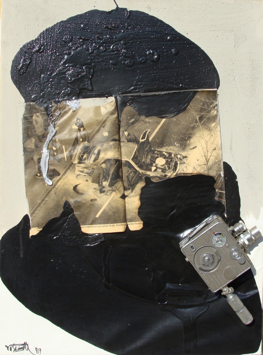 WOLF VOSTELL (1932-) Berlin 4 1989 olio collage oggetto e sabbia su tela cm 80x60x10 il museo Vostell conferma la presenza dell'opera nell'archivio sul retro e sul telaio timbri galleria C.H. Le chanjour Nizza Francia provenienza galleria Soave Alessandria