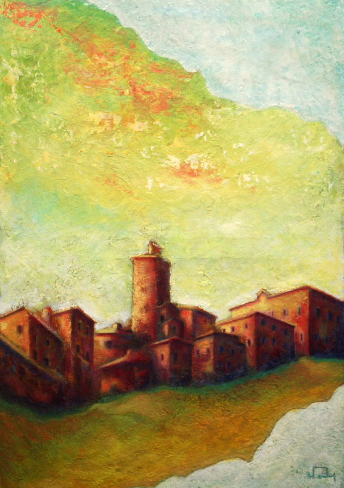 Vittorio Porcarelli 1962, Ancona (An) - [Italia] Paesaggio olio su tela 100x70 cm 2002 firma dell’artista in basso a destra e sul retro certificato di provenienza garantita Picenum