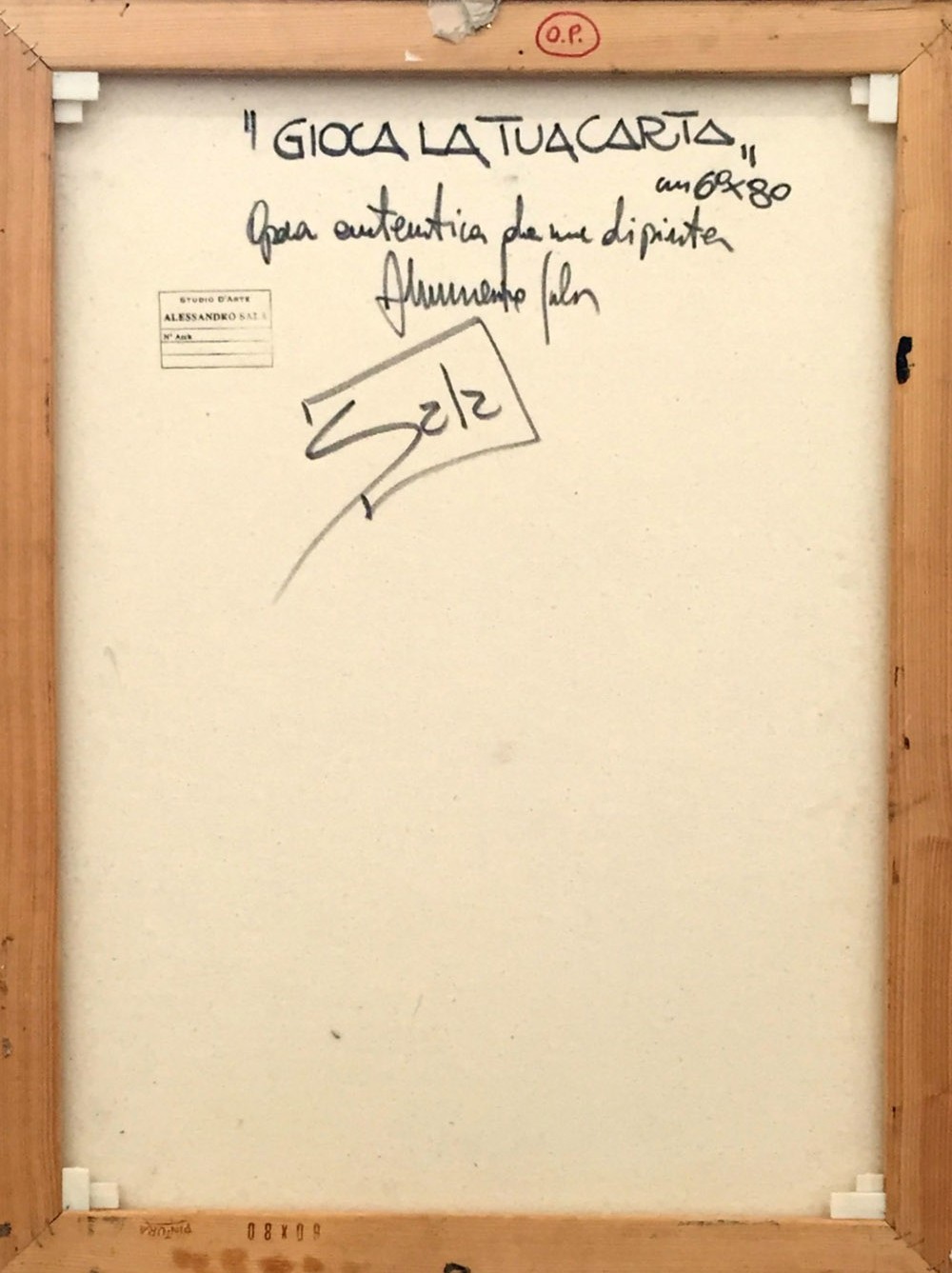 Alessandro Sala 1958, Genova (Ge) - [Italia] Gioca la tua carta olio e sabbia su tela 70x50 cm 2009 firma dell’artista in basso a sinistra e sul retro; opera con listello certificato di provenienza garantita Picenum