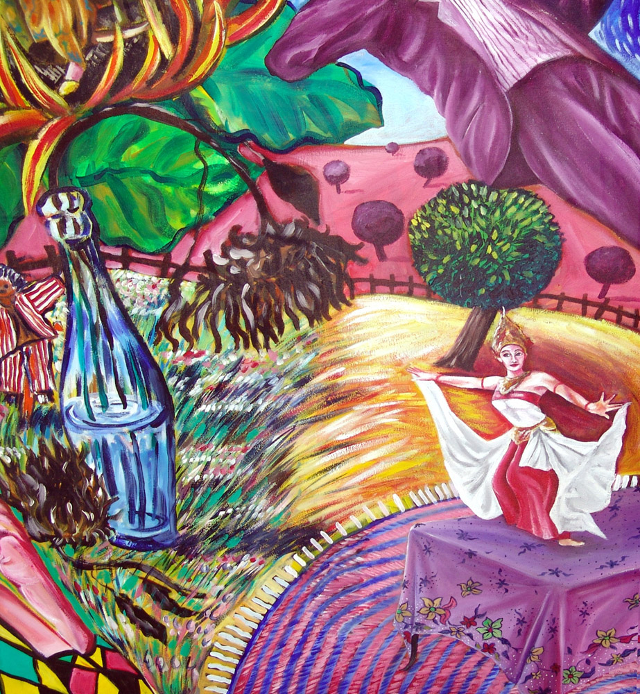 Abu Jalal Sarimon 1964, Singapore - [Repubblica di Singapore] Home sweet home acrilico su tela 105x105 cm 1994 firma dell’artista in basso a sinistra; opera con cornice certificato di provenienza garantita Picenum