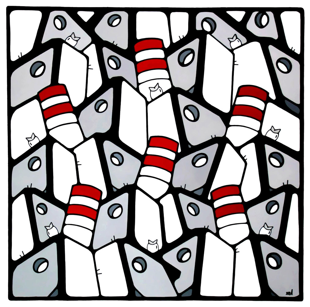 Xel 1975, Torino (To) - [Italia] Sleeping city acrilico su tela 100x100 cm 2014 firma dell’artista in basso a destra e sul retro certificato di autenticità dell'artista